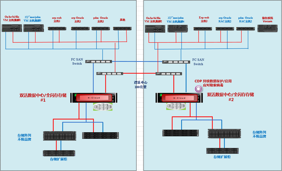 (一期2台普通存储服务器,挂载全闪存SSD盘,通过H-Cloud 双活数据中心 软件,实现全冗余,业务100%不间断的IT营运服务)