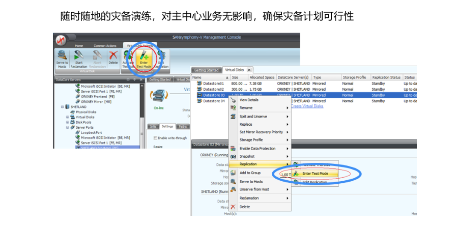 通过H-Cloud 超融合软件提供灾难演练模式功能: