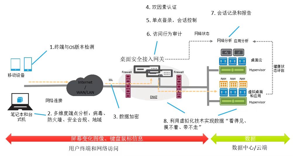 云桌面方案采用Citrix ,通过软件定义电子围栏,软件定义安全策略和自适应传输协议等领先技术,为企业级客户提供了全方位保障的安全研发方案。