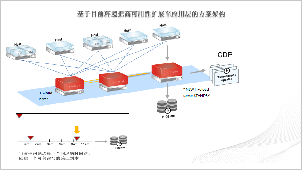 在目前环境中增加一台实时备份服务器,启动CDP技术,CDP技术优于传统备份主要特点之一就是时间窗口更加绵密。