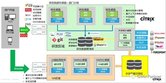 1)云桌面方案采用Citrix ,通过软件定义电子围栏,软件定义安全策略和自适应传输协议等领先技术,为企业级客户提供了全方位保障的安全研发方案。