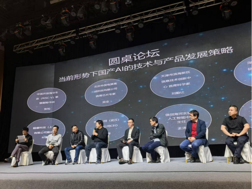 在圆桌论坛环节,RISC-V副秘书长张松就国产AI发展和七位行业专家展开深度对话,诺亚鸿云首席科学家张彦朝指出:“AGC架构已在国内多个重点行业验证,推理效率提升3倍以上。”兆松科技CEO范泽分享:“我们开发的RISC-V专用编译器可将CUDA迁移损耗控制在15%以内。”信创海河实验室主任王涛强调:“要通过开源协作突破技术壁垒,构建自主可控的AI生态。”