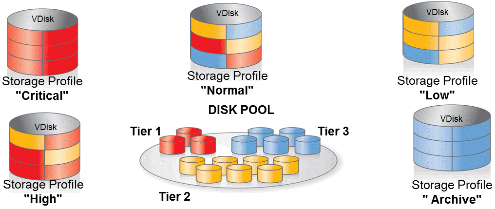 虚拟磁盘池是 H-Cloud 提供存储阵列的整合功能。如前所述,池可能包括多种品牌和型号的磁盘存储层,从而有效地创建不同的价格/性能/容量特性。