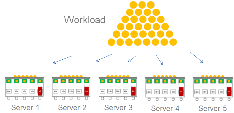 在往常,我们只能是通过扩展更多的服务器节点来提升整体系统性能。虽然一些新的存储介质如SSD,Flash,闪存阵列引入能够缓解一部分存储IO压力,但无法从计算层面彻底解决IO等待时间。有时候我们会想,如果IO能够得到并行处理就好了。